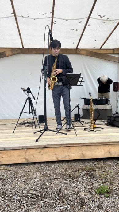 そうそう。この日はシェア農園の前に、主人の山下友教が「せんのや2周年記念祭」で演奏をさせていただきました。